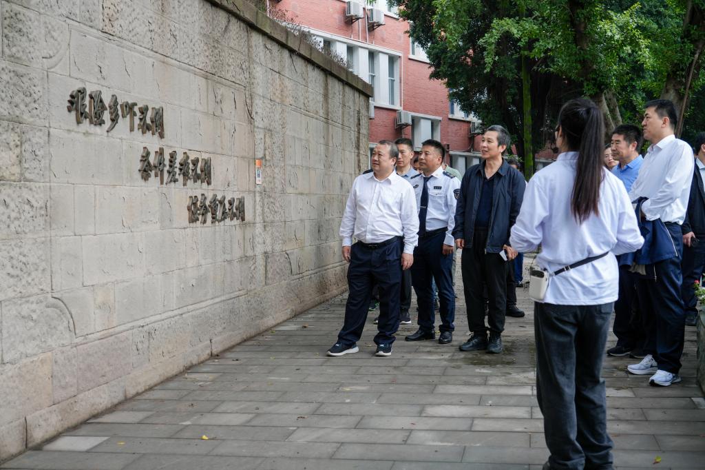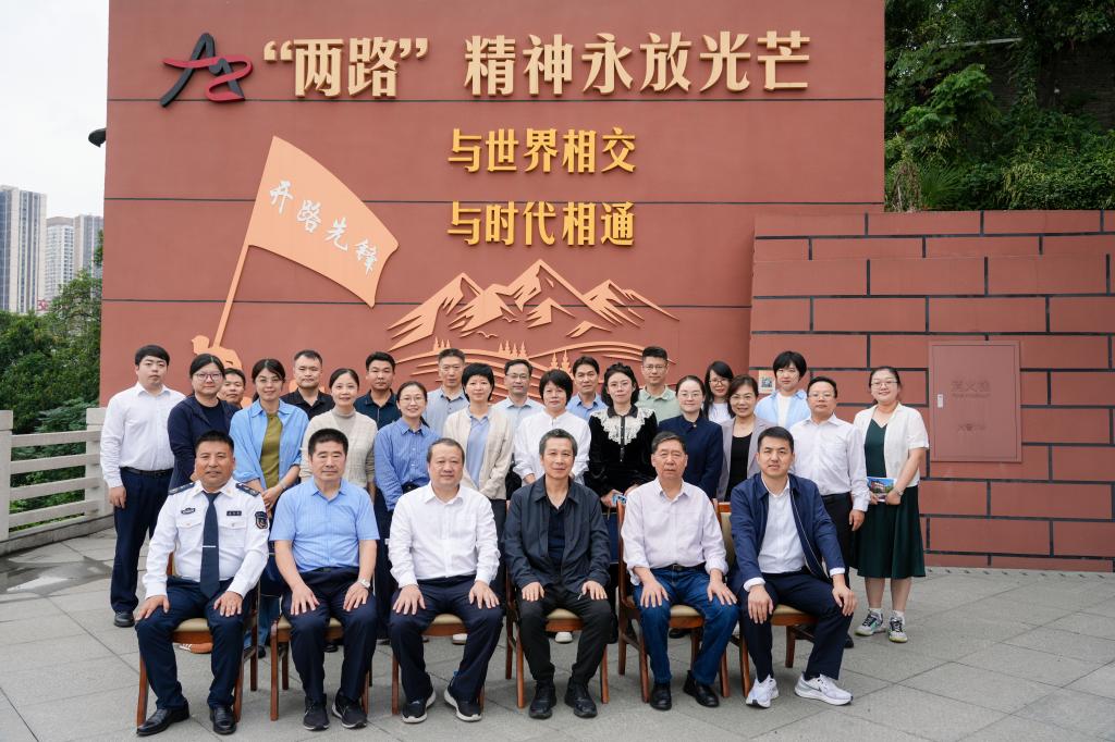 2025年10月15日,广东海事局纪检组长肖明、交通运输部海事局宣传处处长王东率部海事系统宣传部门主要负责同志一行莅临重庆交通大学南岸校区,参观“两路”精神育人园,开展主题学习交流活动。此次活动旨在深化行业文化共建,传承红色基因,弘扬新时代交通精神。