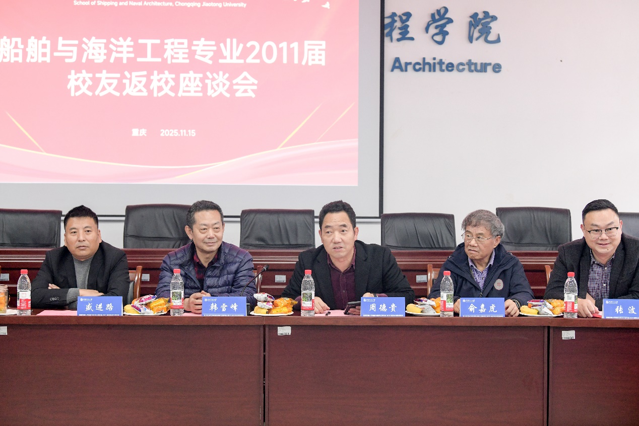2025年11月15日,航运与船舶工程学院船舶与海洋工程专业2011届校友重返母校,一场跨越十余载的师生重逢座谈会温馨启幕。昔日青涩学子如今已成长为船海领域及其他行业的骨干力量,带着对母校的眷恋与同窗的思念,共赴这场青春之约。座谈会在学院的第一会议室举行,由学院党委书记周德贵主持。