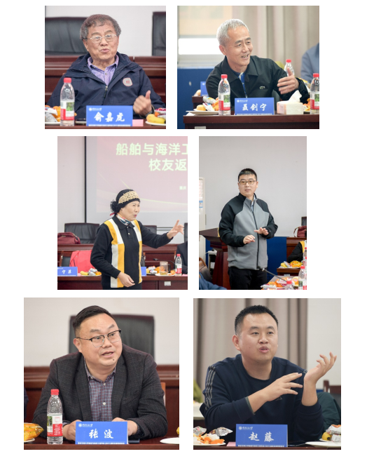 校友代表谭桂恒、隋承志、于滋广、陈筱、赵大军、刘燕华、杜青海等先后发言。他们深情追忆了在母校的求学时光,分享了各自在船舶设计、海洋工程、管理等岗位的奋斗经历,结合行业实践分析了船海领域的发展前景。各位校友纷纷表示,将铭记母校教诲,为学院发展贡献力量。