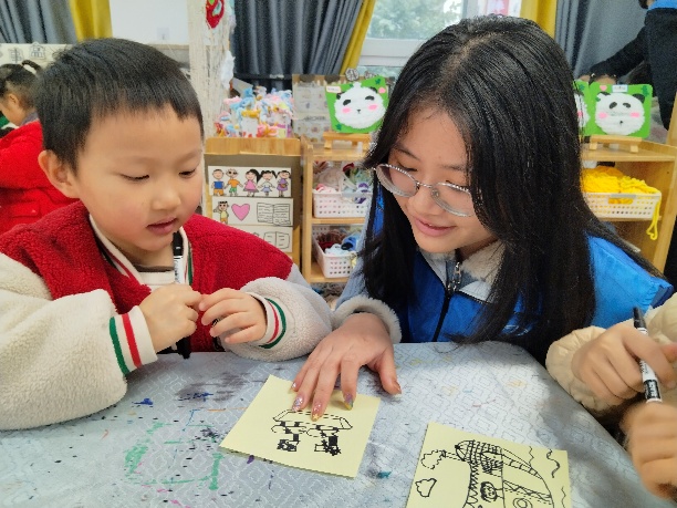 科普讲解结束后,“画一艘心中的船”实践环节让活动氛围达到高潮。志愿者们为小朋友们分发画笔和画纸,鼓励大家大胆想象,画出属于自己的“梦想之船”。孩子们兴致勃勃地挥动画笔,五彩斑斓的船体、高高竖起的桅杆、飘扬的旗帜跃然纸上,有的小朋友还特意画上了导航设备和救生设施,展现出对船舶知识的快速吸收。志愿者们蹲在孩子们身边,耐心倾听他们的创意构想,手把手指导绘画技巧,用实际行动践行“两路精神”中“甘当路石、无私奉献”的担当,让温暖与知识在指尖传递。