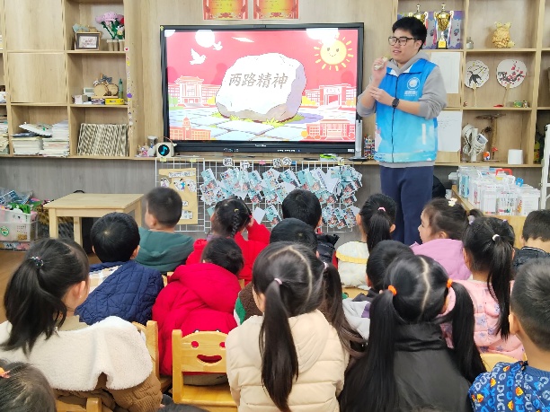 活动现场,科普团志愿者结合精心制作的PPT,用童趣化的语言和生动的图片,向小朋友们揭开了船舶世界的神秘面纱。从江河里的小船到海洋中的巨轮,从船舶的基本构造到航行原理,志愿者们将专业知识转化为孩子们能听懂的“童言童语”,还通过互动问答激发孩子们的好奇心与探索欲。当讲到船舶如何抵御风浪、安全航行时,志愿者巧妙融入“两路精神”中“不畏艰险、顽强拼搏”的内核,告诉孩子们,就像先辈们修建川藏、青藏公路时攻坚克难一样,船舶航行也需要勇气与坚持。