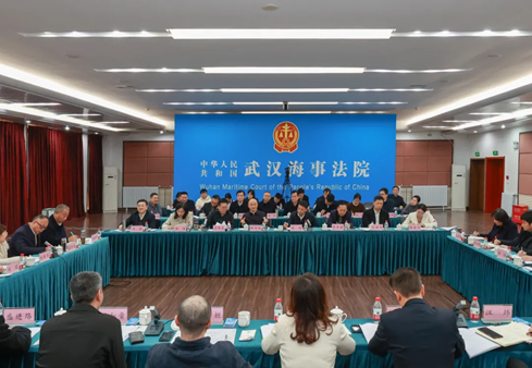 武汉海事法院党组书记、院长李群星,湖北省纪委监委派驻省法院纪检监察组组长、省法院党组成员徐劲,全国人大代表王琼,湖北省人大代表宫步坦,湖北省高级人民法院、武汉海事法院、广州海事法院、北海海事法院、南京海事法院以及涉长江海事行政机关、高校教授、律师、企事业单位代表等40余人参加会议。