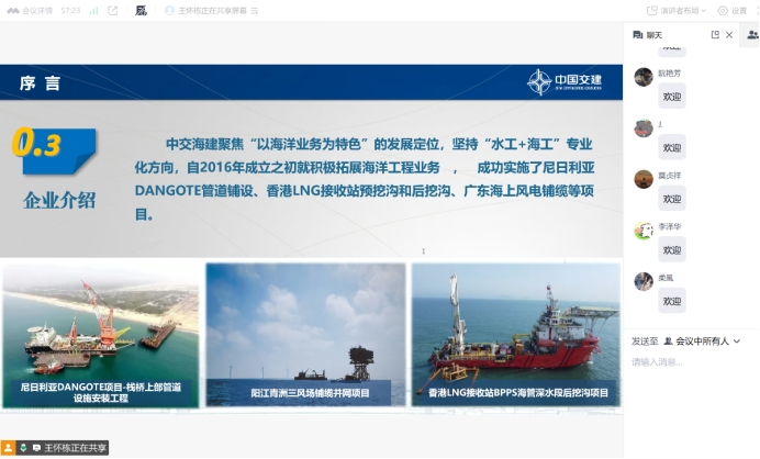 王高工首先概述了海底管道铺设的行业现状,然后介绍了海底管道铺设的海底挖沟机施工技术有关设备和施工工艺及具体案例,最后就海底挖沟机施工有关技术难点与同学们进行了研讨交流。