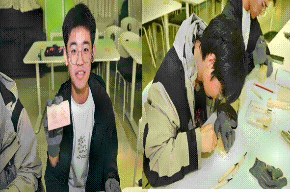 “雕刻时光·匠心永存”。木刻区内,“咔嗒”声不绝于耳,同学们专注运刀,椴木板上金黄色的碎屑轻扬,“明德行远、交通天下”的校训渐渐浮现。木质党徽、木刻印章等作品在一刀一凿中渐次成形,每一道痕迹,都是对交大岁月的深情铭记。