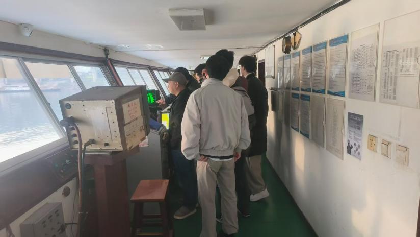 学习过程中,同学们态度严谨、积极主动,主动请教驾驶技巧、设备原理等疑问,认真记录实操要点和注意事项,将课堂上所学的船舶理论知识与现场实操紧密结合,快速提升了自身专业素养。船员师傅们结合多年航行经验,分享了长江航道航行的实操技巧和应急处置案例,让学员们对船舶航行工作有了更直观、深刻的认知。